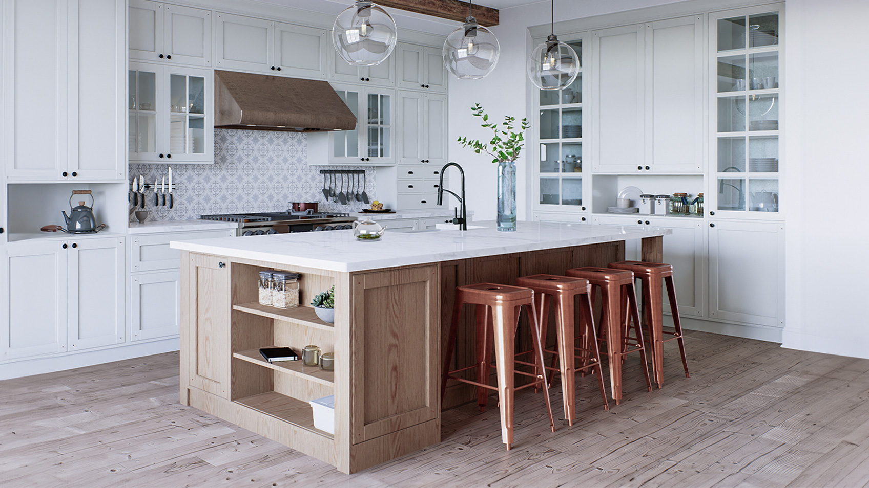 Модерн — направление в дизайне, которое характеризуется природными мотивами, натуральными мягкими оттенками и плавными изогнутыми линиями предметов. Выполнить кухню в таком стиле — задача не из простых, но специалисты нашей компании обожают выполнять сложные проекты.